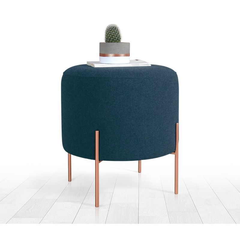 Îmbrățișează conceptul boem și transformă-ți spațiul într-un paradis de liniște. Culoarea albastru marin a acestui puf emană rafinament și adaugă o notă de opulență oricărei încăperi. Designul său rafinat și picioarele din fier acoperit cu cupru îl fac o piesă statement care ridică fără efort ambianța spațiului dvs.