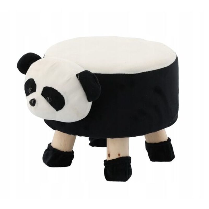 Taburet pentru copii, rotund, model urs panda, textil, lemn, alb si negru, max 50 kg, 28x25 cm, Chomik