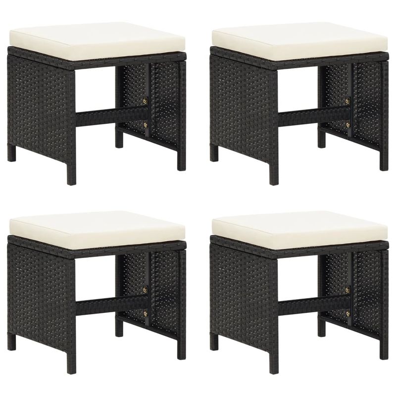 Taburete de gradina cu perne, negru, poliratan Taburete de gradina cu perne, negru, poliratan