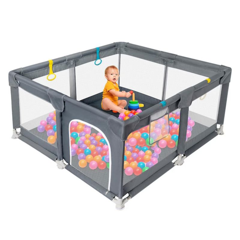 Tarc de joaca pentru copii, HappyKID, plasa de protectie si usa cu fermoar, 150x180xcm, gri Tarc de joaca pentru copii, HappyKID, plasa de protectie si usa cu fermoar, 150x180xcm, gri