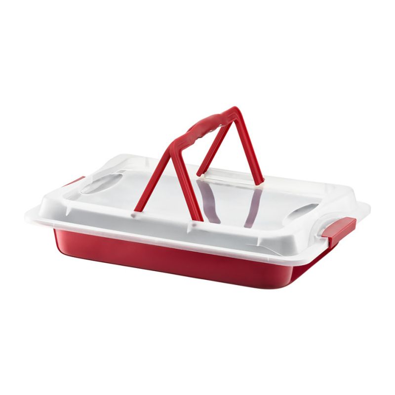 Tava copt cu capac plastic 49 x 29 cm, invelis antiaderent, otel, AMBITION Cherry Tava copt cu capac plastic 49 x 29 cm, invelis antiaderent, otel, AMBITION Cherry
