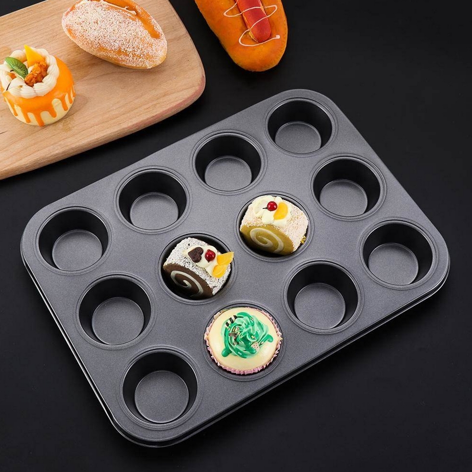 Tava de copt, matrita de teflon pentru briose, 36 cm, negru Tava de copt, matrita de teflon pentru briose, 36 cm, negru