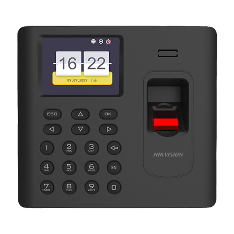 Terminalul are o capacitate de stocare de pana la 3.000 amprente, 3.000 carduri de acces MIFARE si 100.000 de evenimente, timp mic de recunoastere card/amprenta: ≤ 1S. Conexiune LAN RJ45 si Wi-Fi, operare din Browser web sau din soft IVMS.4200AC (gratuit).