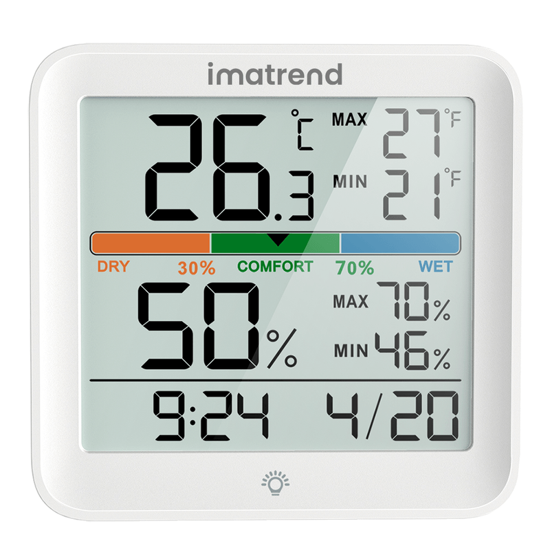 Termometrul si higrometrul digital IMA Trend YG5275 este solutia moderna pentru a monitoriza temperatura si umiditatea din casa. Cu un ecran mare, iluminare discreta si touch intuitiv, acest dispozitiv te ajuta sa mentii un climat sanatos si confortabil.