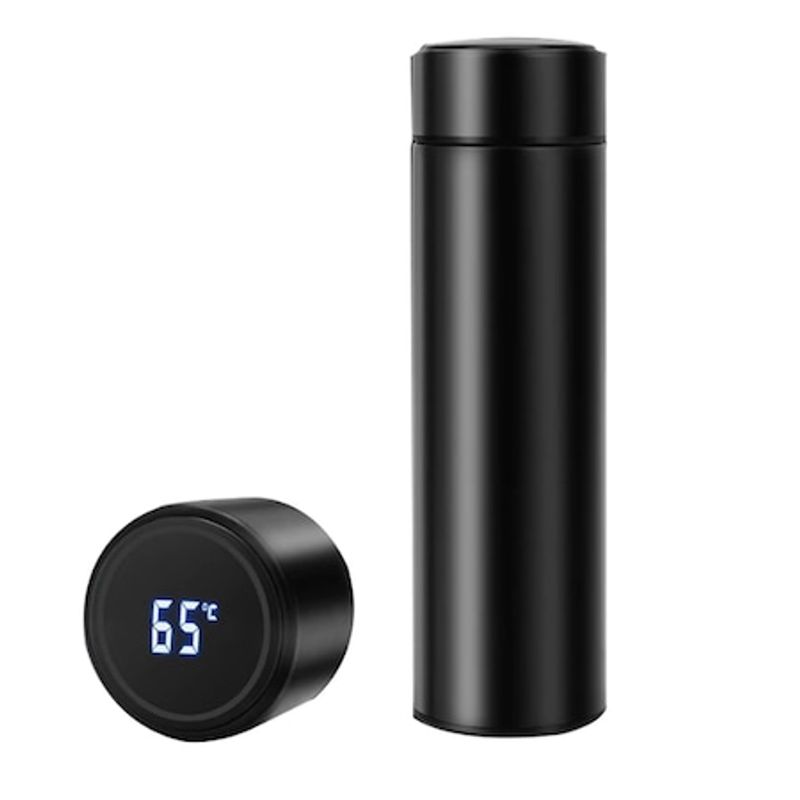 Termos smart cu pereti dublii din inox si afisaj LED, indicator temperatura C, negru, 500 ml Termos smart cu pereti dublii din inox si afisaj LED, indicator temperatura C, negru, 500 ml