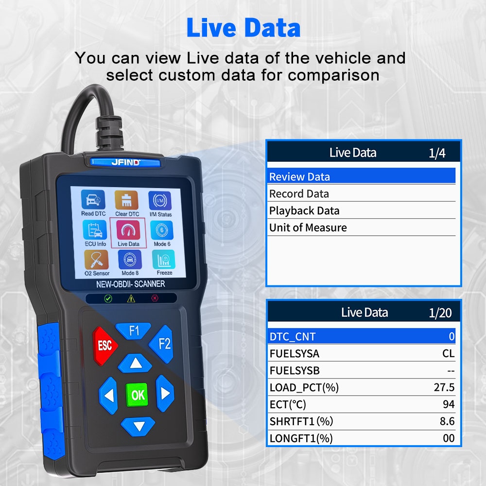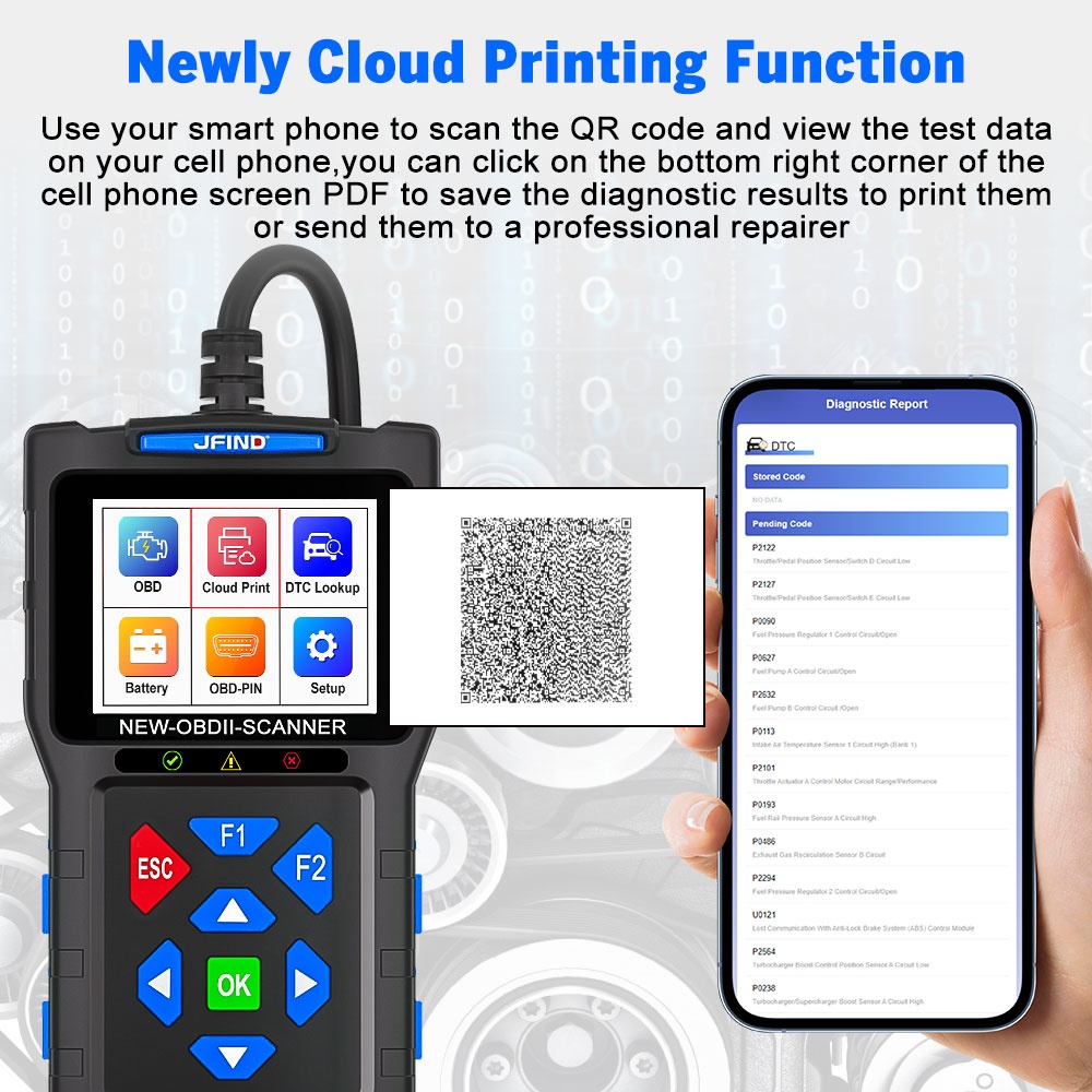 JFIND JF700 Pro OBD2 Scanner – solutia completa pentru verificarea sanatatii motorului si a bateriei. Recomandat pentru oricine doreste un tester fiabil, rapid si usor de utilizat.