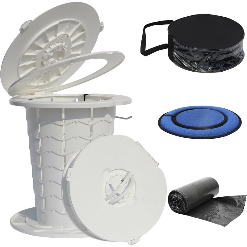 Toaleta se pliaza complet pana la doar 7,5 cm inaltime, economisind spatiu in bagaj. Desfacuta, ajunge la 35 cm, oferind o inaltime confortabila pentru utilizare. Cantareste doar 1,27 kg, fiind suficient de usoara pentru deplasari si drumetii.