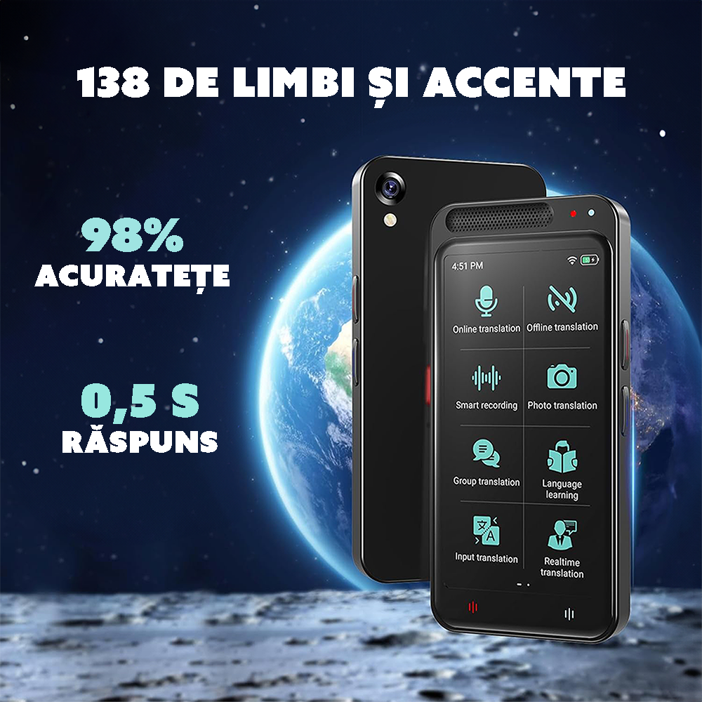Traducere bidirecțională și instantanee: Traduceți instantaneu in doar 0,5 secunde, facilitand conversațiile fluide in orice limbă.