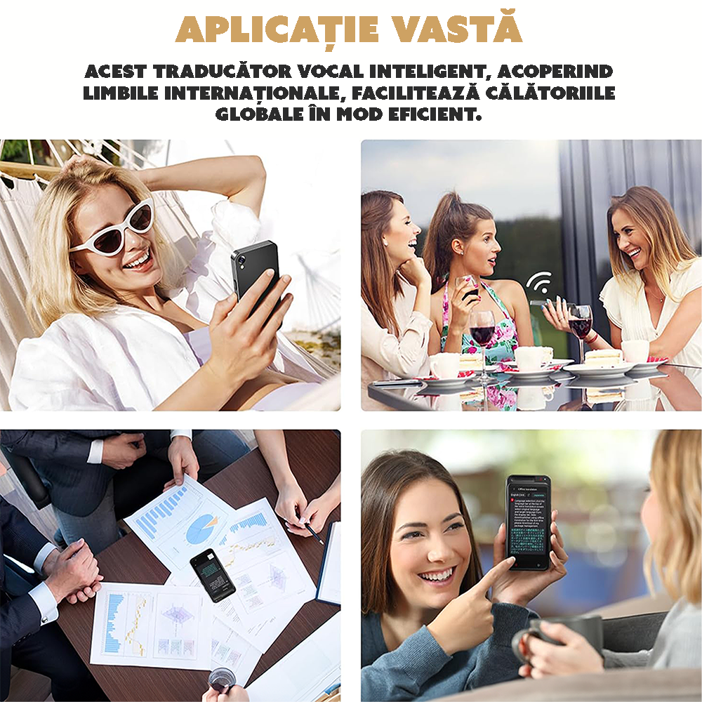 Funcționalități multiple: Suportă traducerea prin voce și fotografii, ideal pentru meniuri, indicatoare și documente.