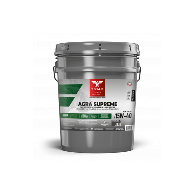 TRIAX AGRA Supreme ESP 15W-40 este in acest moment cel mai performant ulei de motor din lume, pentru utilaje agricole, depasind cu mult competitia si este prima recomandare ca si ulei de motor pentru motoarele turbo diesel cu aspiratie normala, turbo sau bi-turbo, inclusiv cele Interim Tier 4 de la John Deere si CASE care folosesc 15W-40, din orice an sau orice fabricant.