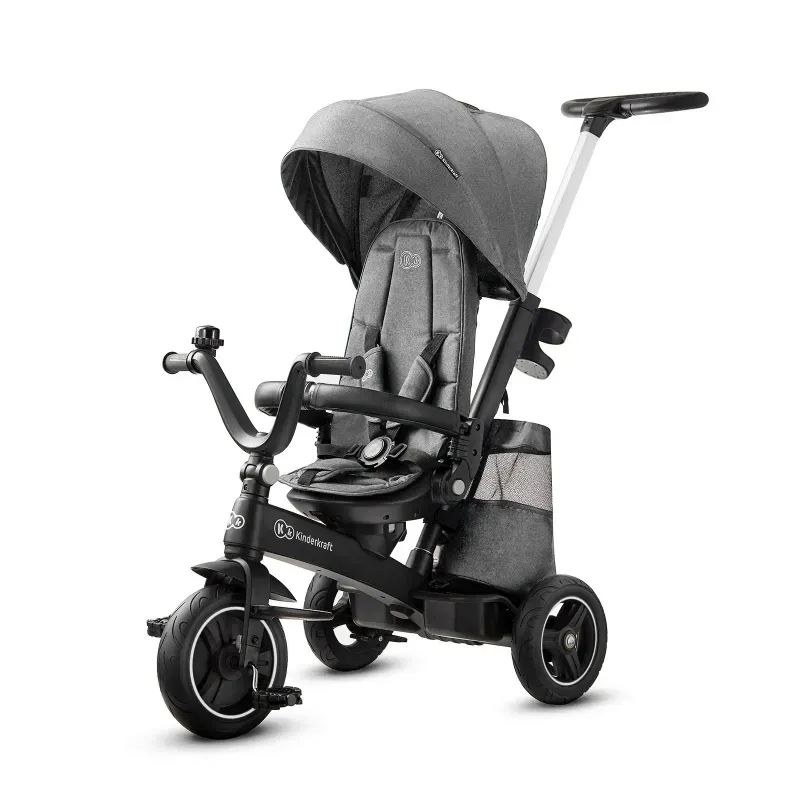 Tricicleta Kinderkraft EASYTWIST, PLATINUM GREY Plimbarea este pentru un copil o ocazie excelenta de a descoperi lumea din jur. EASYTWIST PLATINUM GREY este o tricicleta de care se va indragosti fiecare copil ! În timp ce ii asigura copilului o buna distractie, il ajuta sa-si dezvolte abilitatile motorii deja de la varsta de 9 luni! sezutul inovator, dotat cu sistemul pivotant CLICK & TWIST, permite o rotatie completa la 360°, iar bicicleta in sine este usoara si extrem de durabila - datorita unui cadru solid din aliaj de magneziu. Plimbarea cu aceasta tricicleta ajuta, de asemenea, la stapanirea echilibrului, sustine coordonarea motorie si invata un comportament corect si sigur in afara casei. EASYTWIST PLATINUM GREY este o tricicleta 5 in 1 - datorita constructiei sale modulare poate fi modificata si ajustata la varsta si inaltimea copilului. Avantaje Siguranta Rotile tricicletei sunt fabricate din PU - sunt puternice si durabile - practic impenetrabile. Au o rezistenta crescuta la abraziune. Rotile din spate sunt, de asemenea, echipate cu rulmenti, si de aceea sunt perfecte pentru orice suprafata. Confortabil de utilizat, bara fixata protejeaza copilul impotriva caderii. Element protector al rotii din fata pentru a proteja picioarele copilului in timpul mersului. Centuri de siguranta in 5 puncte cu elemente protectoare moi (pentru centura dintre picioare). Blocaj care permite pedalarea fara propulsarea rotii. Îndeplineste standardul european EN-71. Franele (cate una pe fiecare roata) impiedica deplasarea accidentala a tricicletei. Confort Copertina rabatabila care protejeaza copilul de soare si vant (impermeabila, cu UPF 50+). Maner reglabil pentru parinte (de la 84 cm la 107 cm). Manerul poate fi setat pe 4 niveluri. Manevrarea usoara a tricicletei in timpul mersului cu ajutorul manerul dedicat pentru parinte. Manerele antiderapante din cauciuc asigura o prindere sigura pentru copil. Husa detasabila a scaunului poate fi spalata in masina de spalat rufe. Functionalitate Scaun CLICK & TWIST rotativ la 360°. Tricicleta creste odata cu copilul - structura modulara face posibila modificarea produsului pentru a-l potrivi la varsta micului utilizator (5 optiuni de setare!). La tricicleta sunt atasate accesorii suplimentare, cum ar fi un cos pentru maruntisurile copilului, un sac-rucsac si un suport pentru o cana sau o sticla de apa. Usurinta cu care se poate face demontarea anumitor elemente, face ca EASY TWIST PLATINUM GREY sa fie foarte usor de transportat. Accesorii suplimentare Sac-rucsac Cos pentru maruntisuri Suport pentru cana Sonerie Fabricatie Materiale Cadru fabricat din aliaj ultra-usor si durabil de magneziu Material poliester nealergen, cu uscare rapida, rezistent la abraziuni si conditii meteorologice Roti PU Dimensiuni &bull inaltime (maner parinte) 107 cm &bull inaltime (bicicleta cu copertina) 130 cm &bull latime (roata din fata) 34 cm &bull inaltime (roata din fata) 25,4 cm &bull inaltime (roata din spate) 20,3 cm Greutate 10 kg Dimensiuni ambalaj/ greutate 73 x 43 x 28,5 cm/11,8 kg