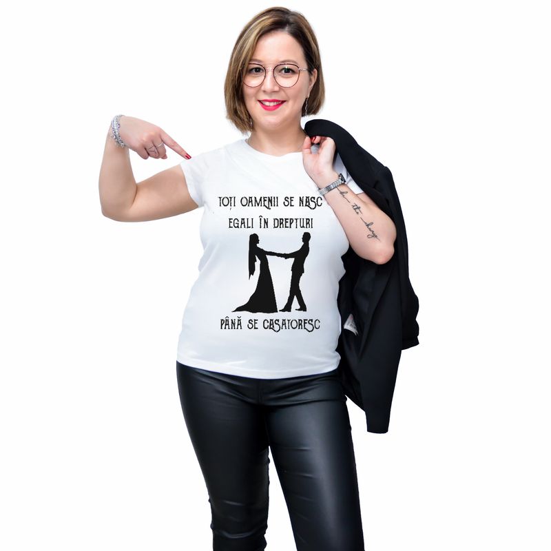 Tricou alb, Femei, Toti oamenii se nasc egali in drepturi...Pana se casatoresc Tricou alb, Femei, Toti oamenii se nasc egali in drepturi...Pana se casatoresc, L