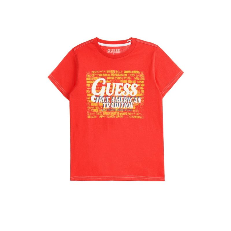 Tricou guess din bumbac cu imprimeu grafic si logo Rosu Tricou guess din bumbac cu imprimeu grafic si logo Rosu 140 CM 10 ani