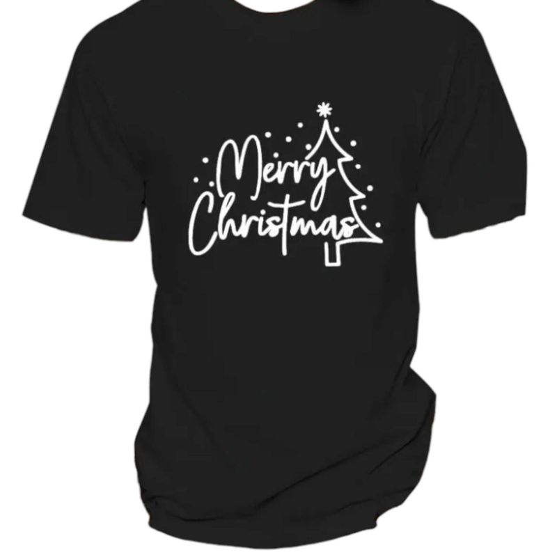 Tricour de Craciun, 100% bumbac, negru, "Merry Christmas" Tricour de Craciun, 100% bumbac, negru, "Merry Christmas"