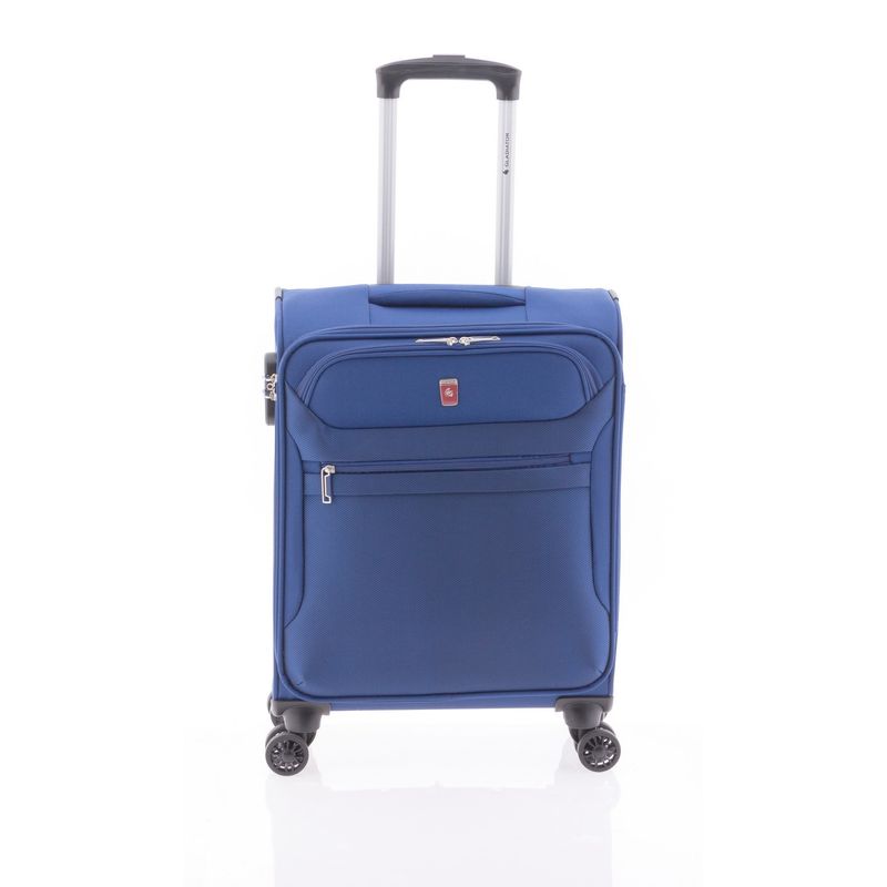 Trolerul de cabina extensibil Gladiator 3D MG 2010 este fabricat dintr-o combinatie de poliester cu nylon, doua tesaturi sintetice cu o durabilitate mare, astfel rezista cu succes impotriva uzurii obisnuite. Are dimeniunea de 55 (cu roti) / 49 (fara roti) x 40 x 20/24 cm si este acceptat ca bagaj de cabina la bordul avionului.