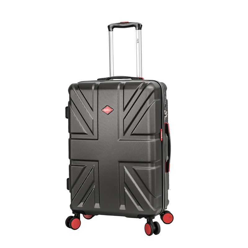 Materialul ABS din care este confectionat trolerul, cunoscut si sub denumirea de acrilonitril-butadien-stiren, este un plastic durabil si usor, utilizat pe scara larga in industria bagajelor. Designul carcasei imita steagul Angliei, ce va face identificarea trolerului mult mai usoara printre alte bagaje, iar partea frontala este decorata de logo-ul brandului Lee Cooper.