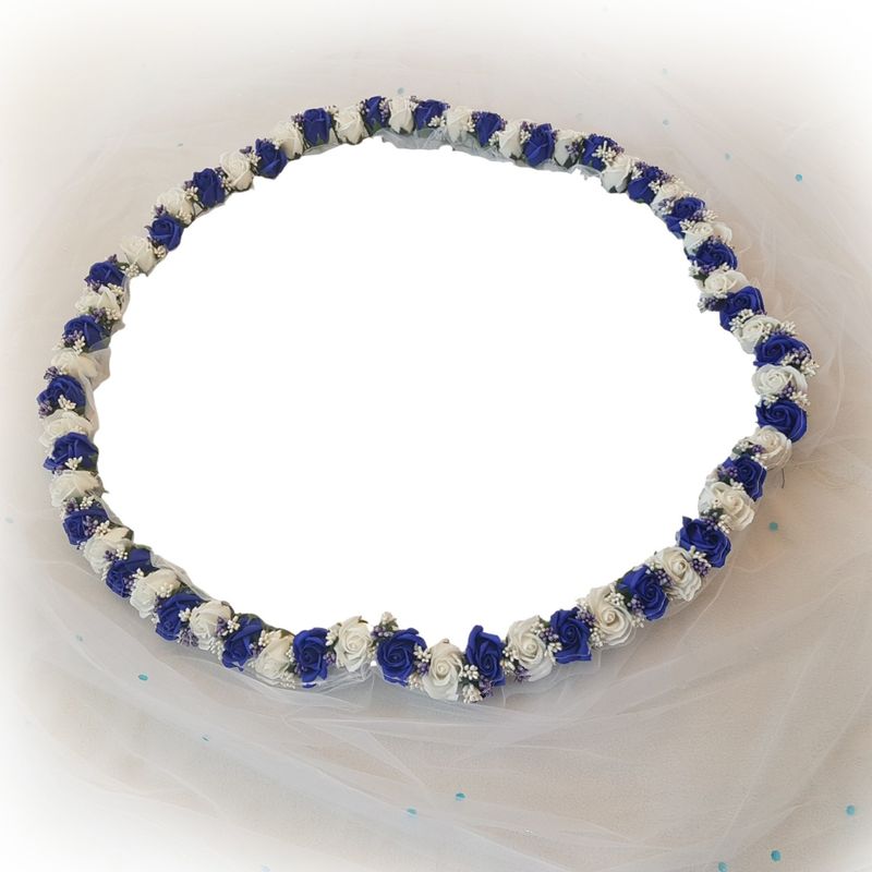 Tul pentru decor cristelnita, trandafiri sapun albastrii si albi, 260 cm Tul pentru decor cristelnita, trandafiri sapun albastrii si albi, 260 cm