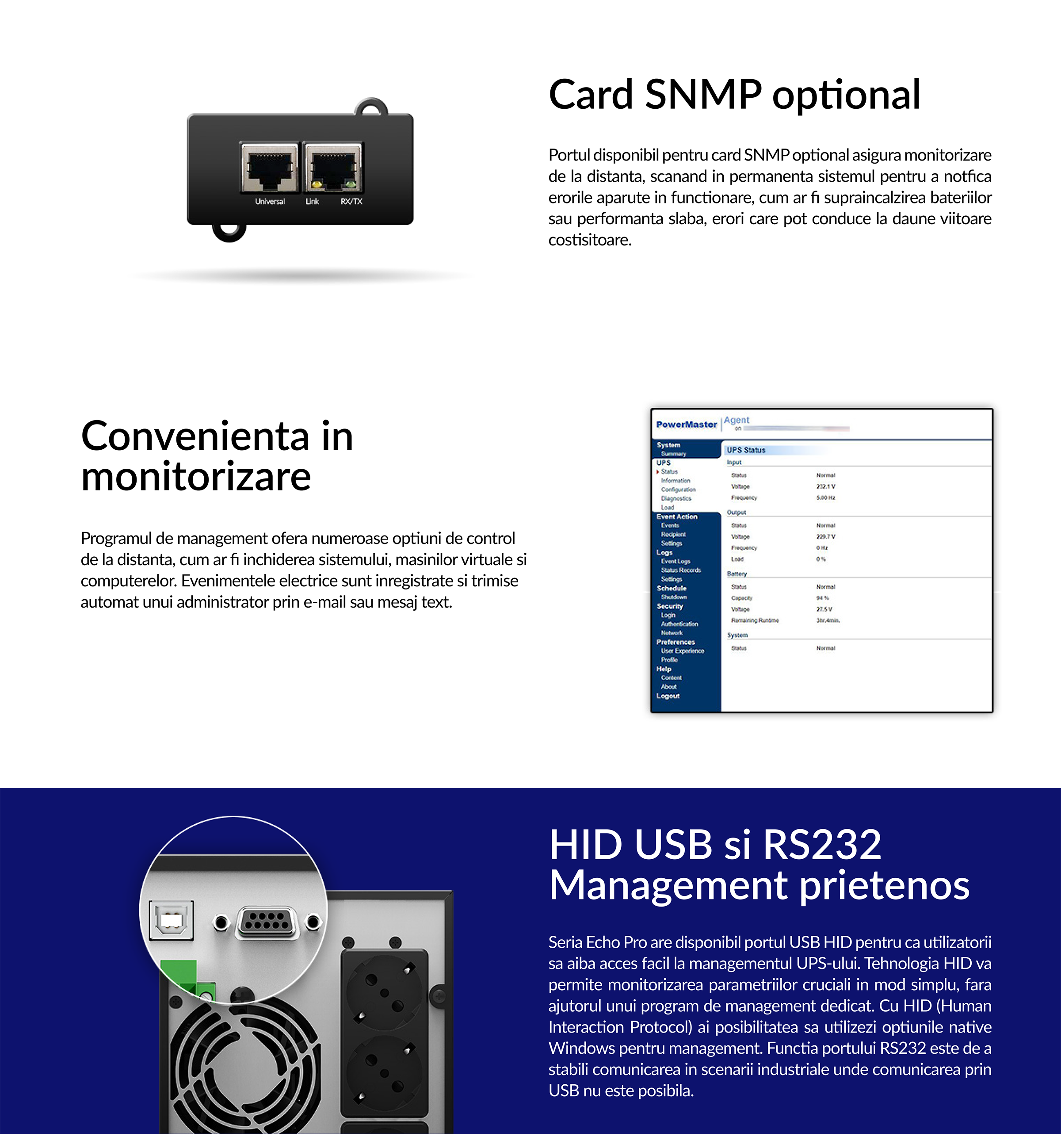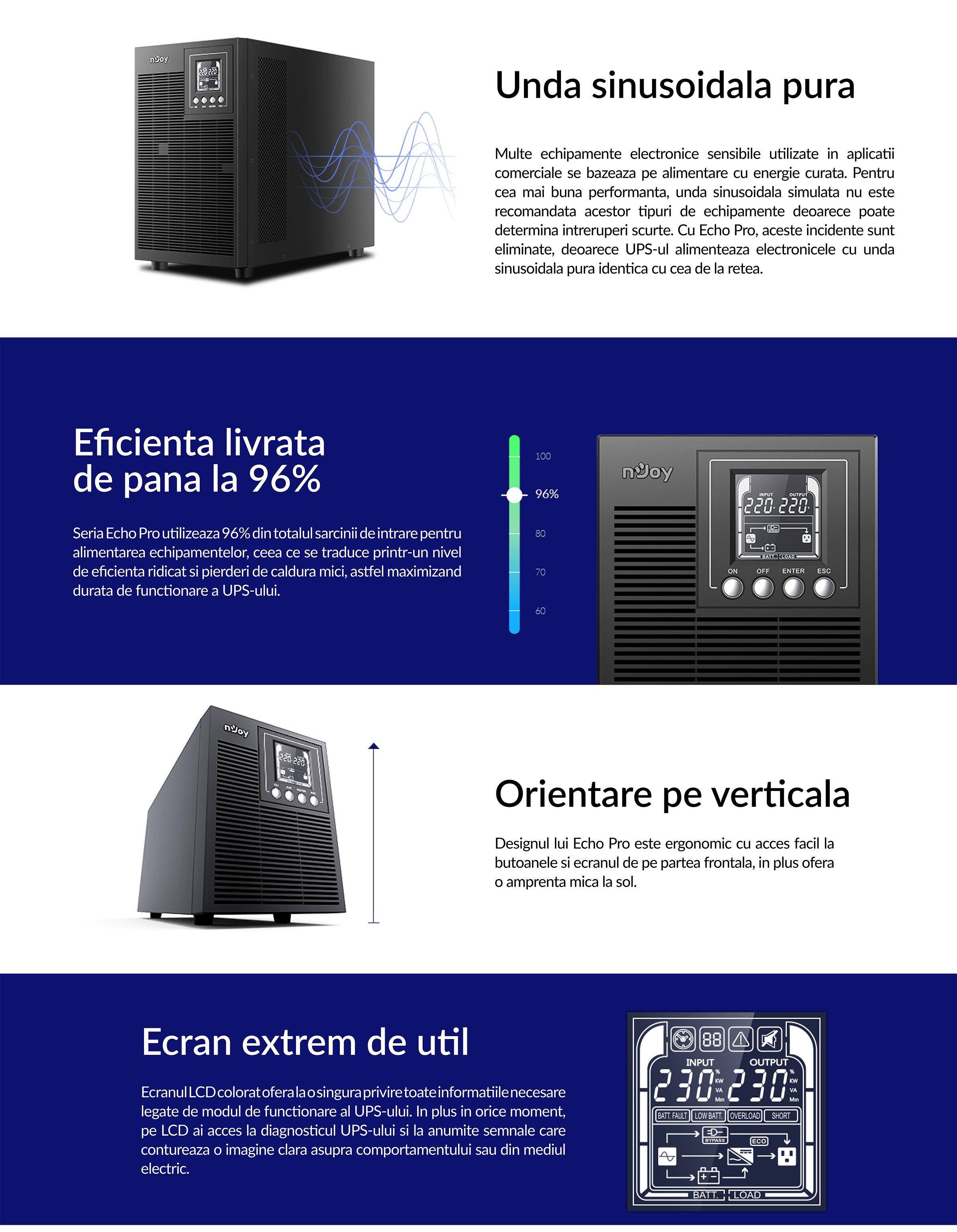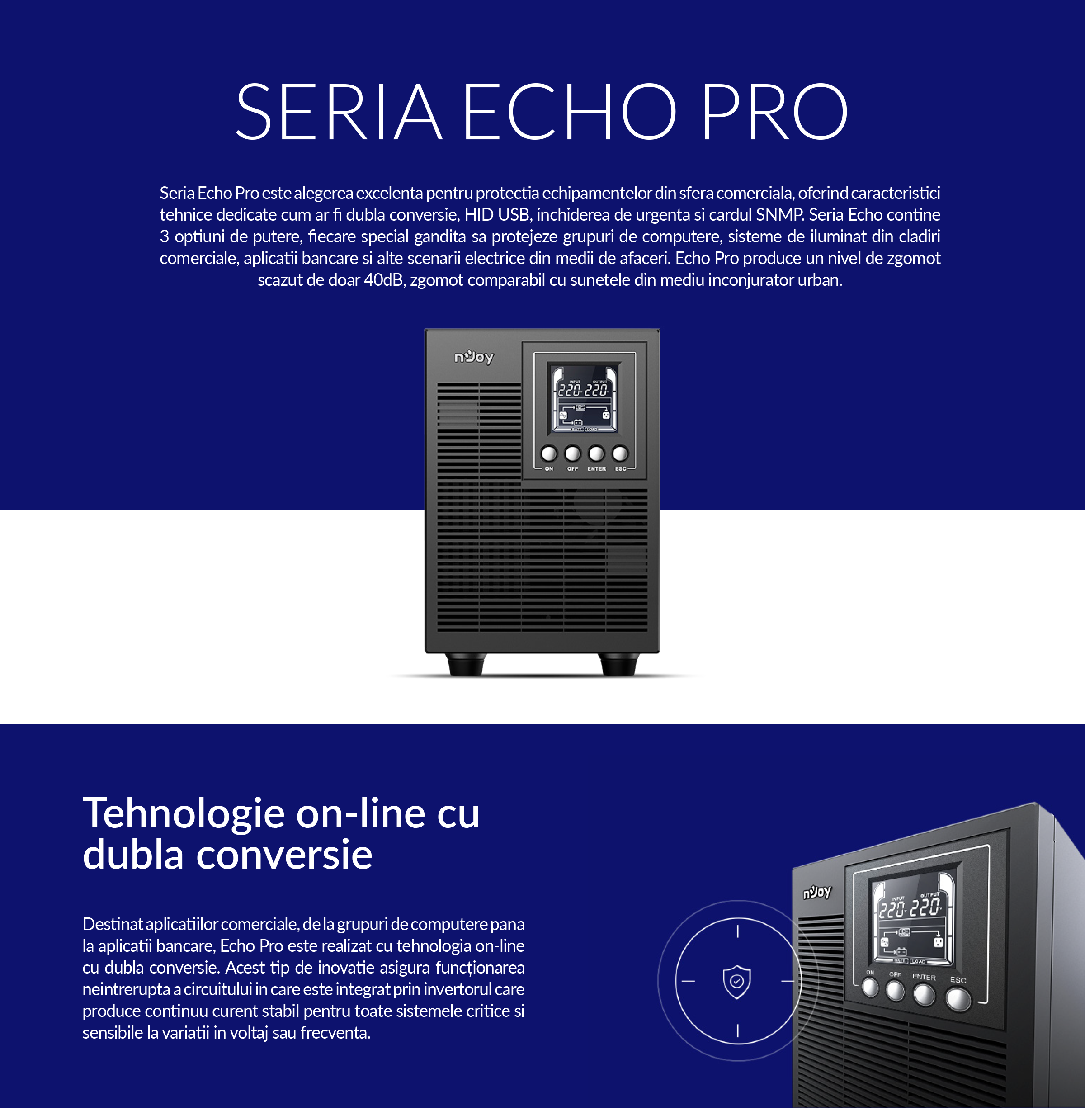 UPS NJOY ECHO PRO 2000, 2000VA/1600W, On-line, Dubla conversie, Auto-Retart UPS NJOY ECHO PRO 2000, 2000VA/1600W, On-line, Dubla conversie, Auto-Retart