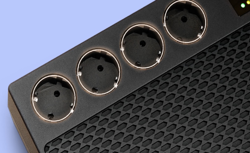Seria Renton PLUS este echipata cu 4 prize Schuko, pentru alimentare de rezerva si protectie la supratensiuni, suficiente pentru a proteja si a asigura alimentarea cat mai multor dispozitive de la biroul sau de acasa fara a utiliza prelungitoare dezordonate.