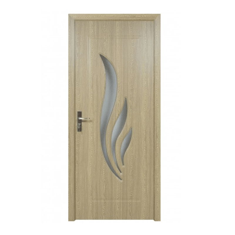 Structura usii este de tip sandwich, cu miez din lemn masiv, placata cu material compozit (MDF), iar foaia usii include rama perimetrala din lemn masiv.