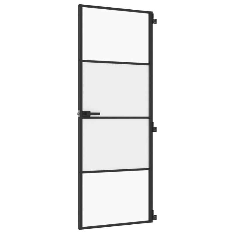 Usa de interior negru 76x201,5 cm sticla securiz./aluminiu slim, negru și transparent și mat, model 3 bare orizontale Usa de interior negru 76x201,5 cm sticla securiz./aluminiu slim, negru și transparent și mat, model 3 bare orizontale