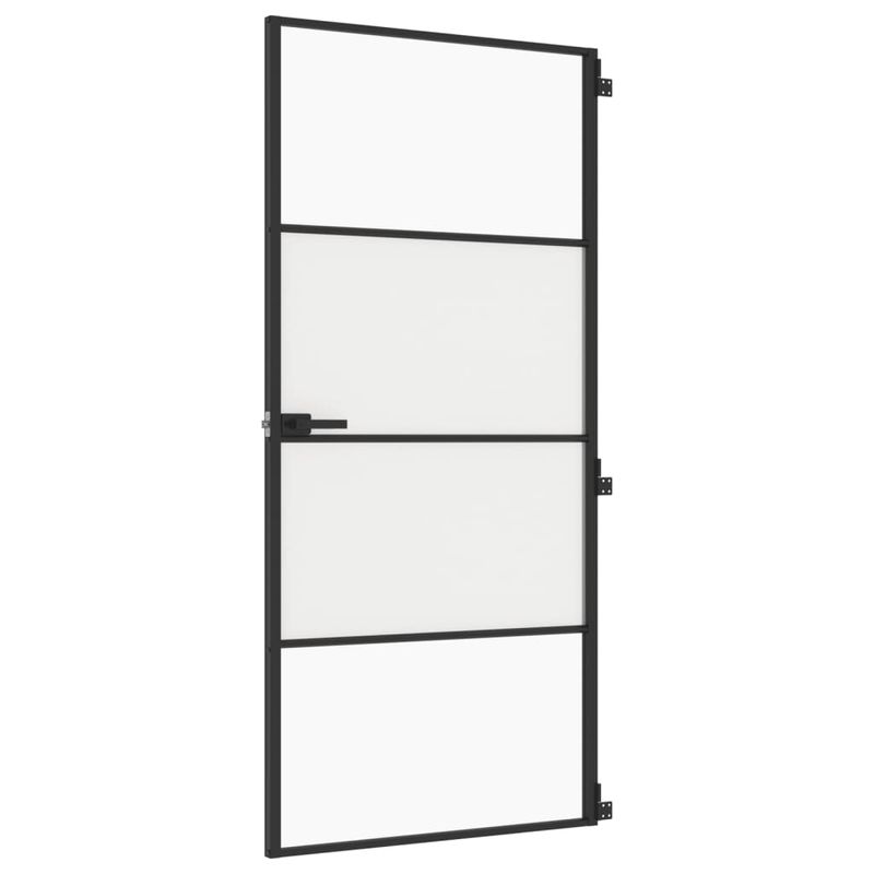 Usa de interior negru 93x201,5 cm sticla securiz./aluminiu slim, negru și transparent și mat, model 3 bare orizontale Usa de interior negru 93x201,5 cm sticla securiz./aluminiu slim, negru și transparent și mat, model 3 bare orizontale