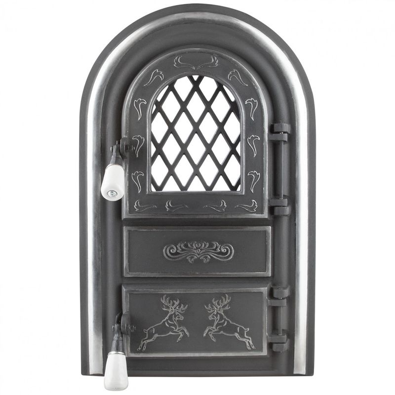 Usa din Fonta pentru Semineu cu Geam, Cerbi Ornamente Argintii, EvoTools, 555x345mm, 674242 Usa din Fonta pentru Semineu cu Geam, Cerbi Ornamente Argintii, EvoTools, 555x345mm, 674242