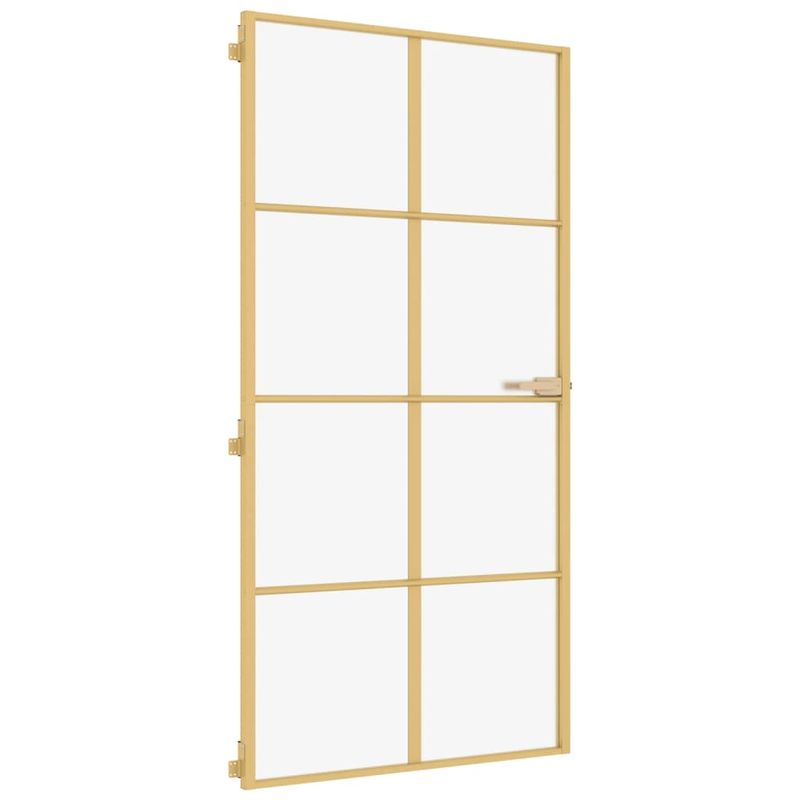 Usa interior Slim auriu 102,5x201,5cm sticla temperata/aluminiu, auriu și mat, model 4x2 grilaje Usa interior Slim auriu 102,5x201,5cm sticla temperata/aluminiu, auriu și mat, model 4x2 grilaje