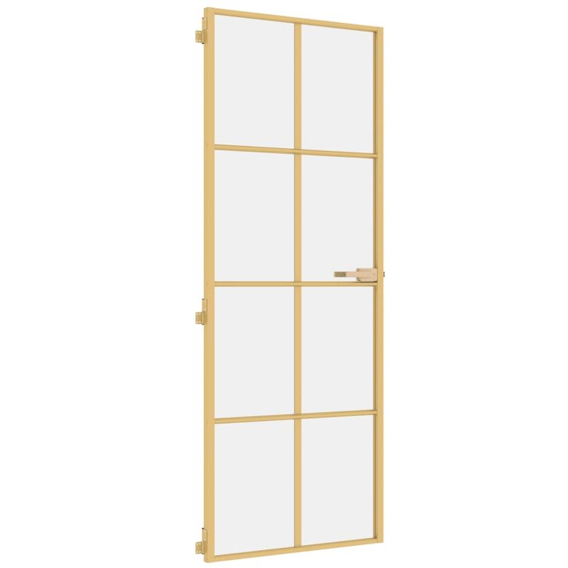 Casa si GradinaConstructiiUsi interior, exterior si garajUsi garajUsa interior Slim auriu 76x201,5 cm sticla securizata/aluminiu, auriu și transparent, model 4x2 grilaje