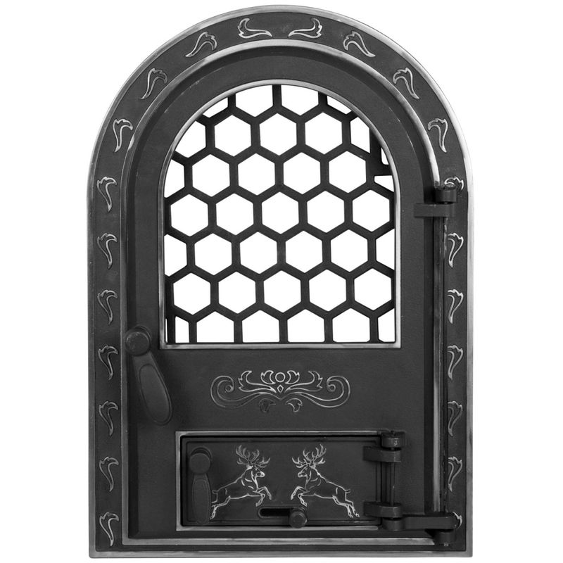 Usa Semineu cu Geam Cerbi Ornamente Argintii Mare EvoTools, 610mm x 425mm Usa Semineu cu Geam Cerbi Ornamente Argintii Mare EvoTools, 610mm x 425mm