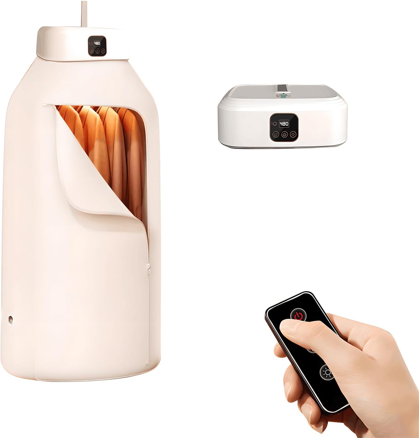 Uscator de Haine Portabil BYNOVIS®, Capacitate 10KG - 9-12 haine, Temperatura constanta, Putere MAX 600W, Uscare rapida, Timer, Compact, Calitate premium, Sac Lavabil, Pentru orice tip de haine, Lampa UV pentru dezinfectare, Telecomanda, Acasa, De voiaj