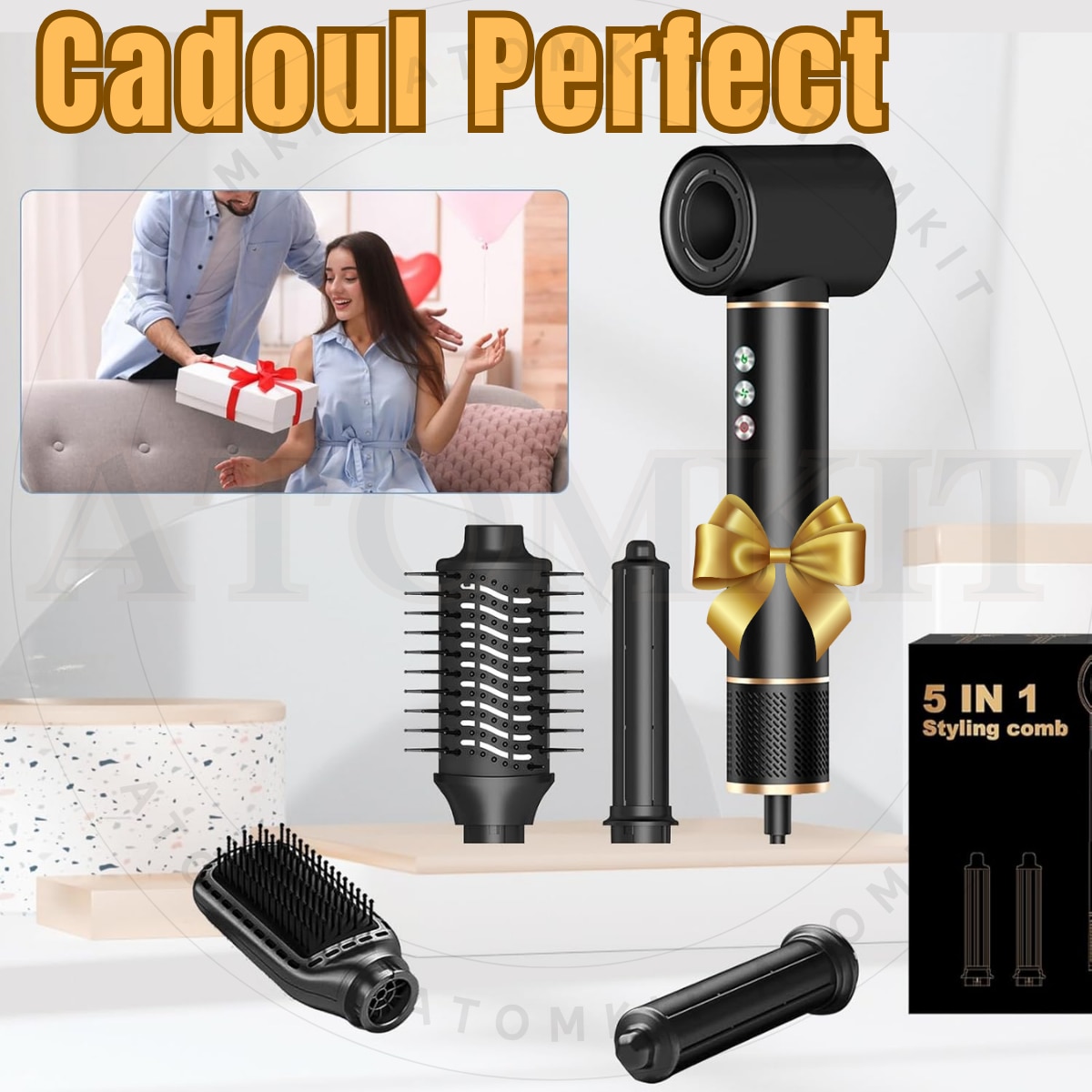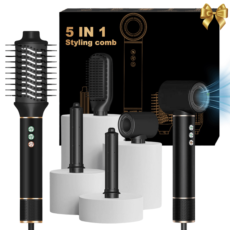 Transforma-ti rutina de ingrijire a parului cu acest set profesional de coafat 5-in-1, ideal pentru toate tipurile de par. Combinand functiile de uscare rapida, indreptare, ondulare si volumizare, acest aparat revolutionar iti permite sa creezi coafuri de salon direct la tine acasa, in doar cateva minute.