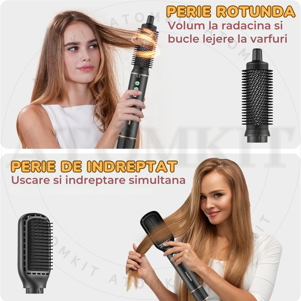 Set de Coafat Par 5-in-1 cu Uscator, Perie Rotativa si Ondulator Automat – Motor 110.000 RPM, Ioni Negativi, 3 Trepte de Temperatura si Viteza, Putere 1400W