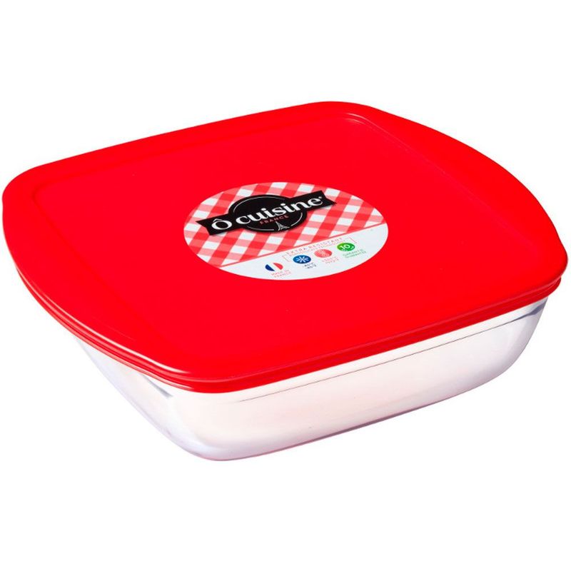 Vas termorezistent cu capac din plastic rosu 25 x 22 x 7 cm, 2.2 L, OCUISINE Vas termorezistent cu capac din plastic rosu 25 x 22 x 7 cm, 2.2 L, OCUISINE