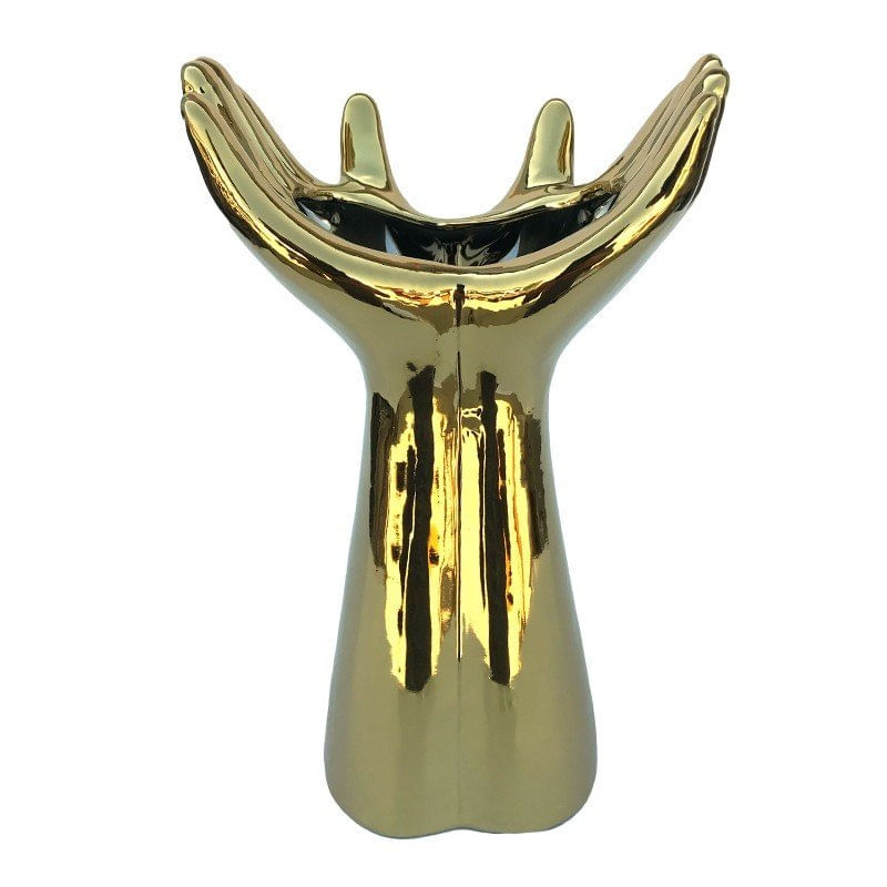 Vaza decorativa maini deschise din ceramica eleganta, 18 cm, Auriu, 791H Vaza decorativa maini deschise din ceramica eleganta, 18 cm, Auriu, 791H