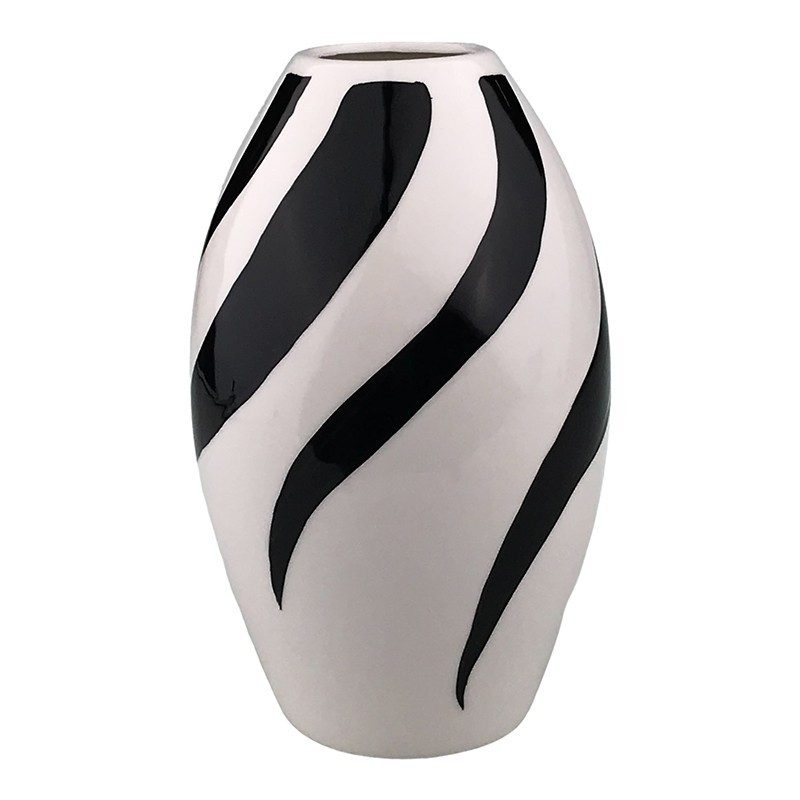 Vaza decorativa ovala cu dungi de zebra, 23 cm, Alb/Negru, 1690H Vaza decorativa ovala cu dungi de zebra, 23 cm, Alb/Negru, 1690H