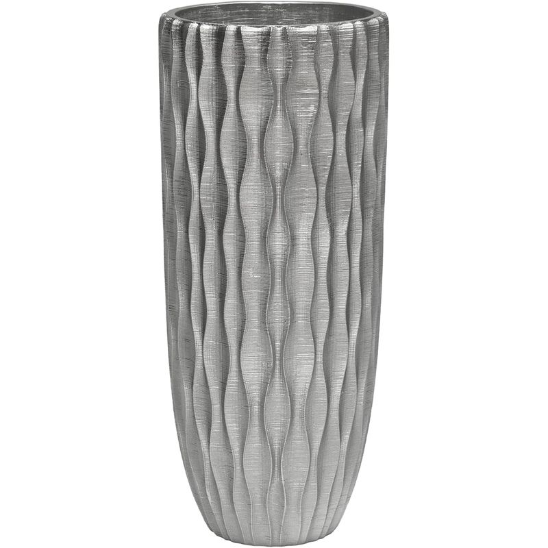 Adauga un plus de stil si rafinament spatiului tau cu vaza decorativa, o piesa handmade cu finisaj metalic lucios si design inspirat din estetica nordica moderna