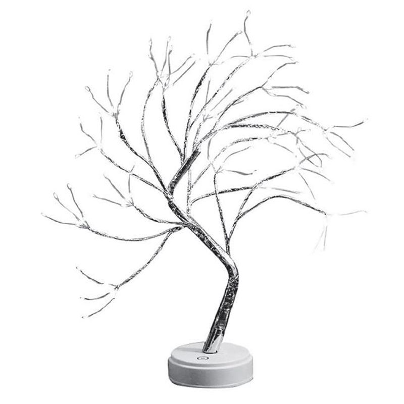 Veioza decorativa LED, in forma de copac cu ramuri reglabile, 108 LED-uri, 2 moduri de iluminare, touch, 50 cm, argintiu