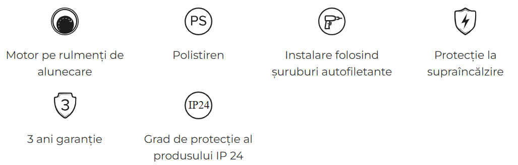 • Grad de protectie IP24 – ideal pentru incaperi cu umiditate ridicata.