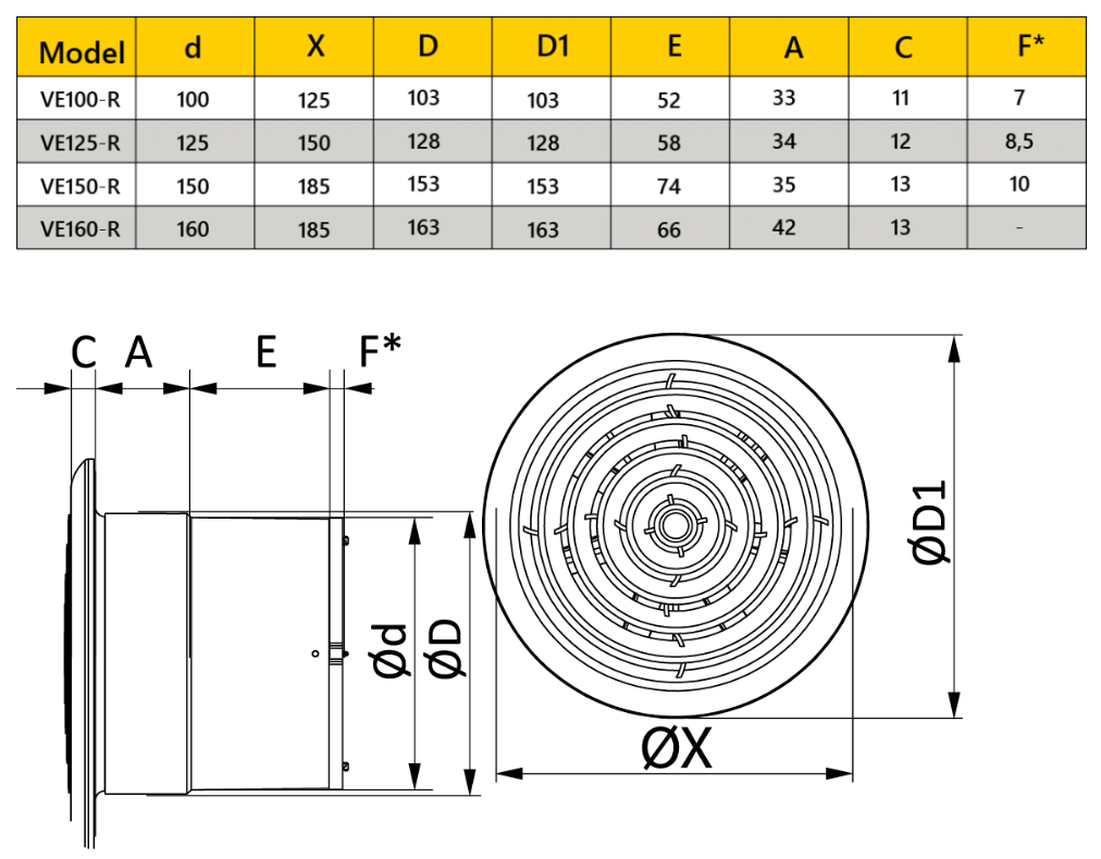 Seria CIRCLE include modele disponibile in mai multe diametre (100 mm, 125 mm, 150 mm si 160 mm), ceea ce le face potrivite pentru incaperi de diferite dimensiuni. Constructia este realizata din plastic ABS de inalta calitate, rezistent la coroziune, radiatii UV si umiditate crescuta, asigurand o durata mare de viata si o functionare sigura.