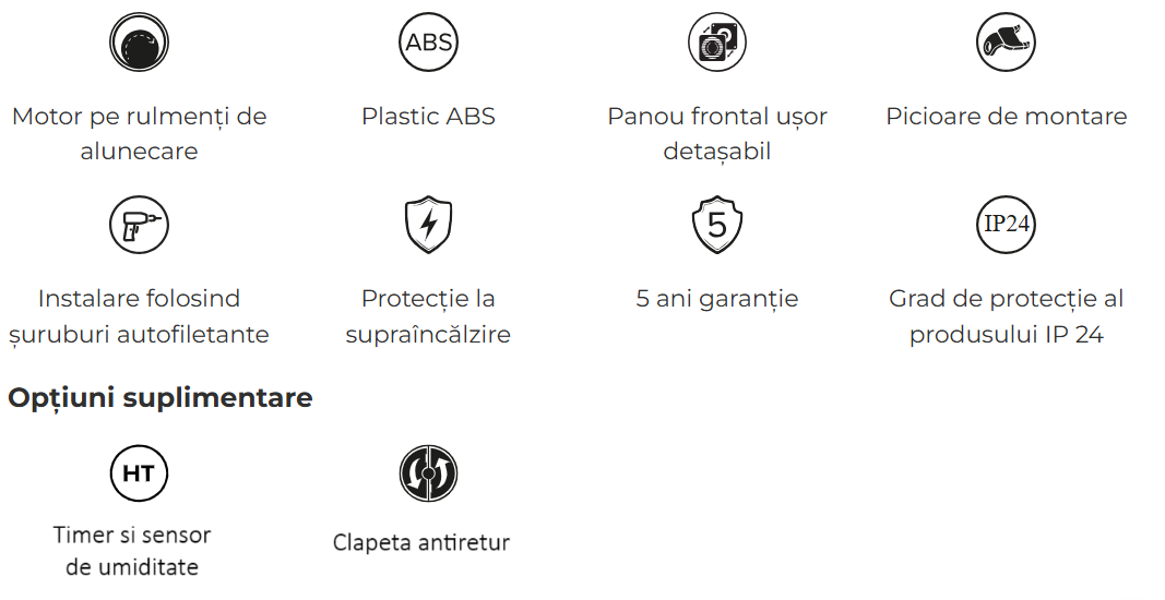 - Ideal pentru ventilatia bailor, bucatariilor, mansardelor, subsolurilor si altor spatii rezidentiale