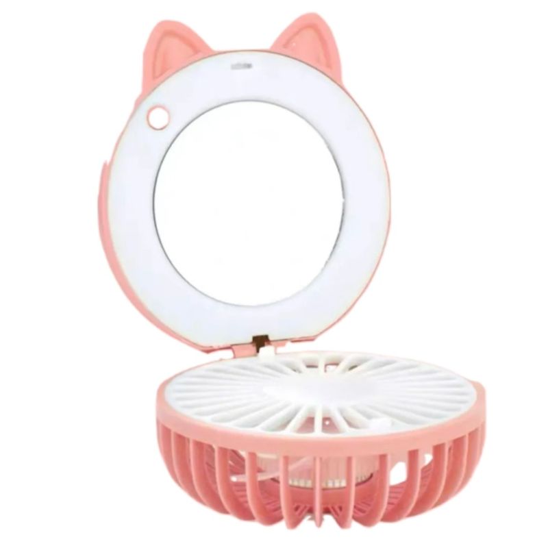 Ventilator oglinda mini LED desene animat , culoare: roz Ventilator oglinda mini LED desene animat , culoare: roz