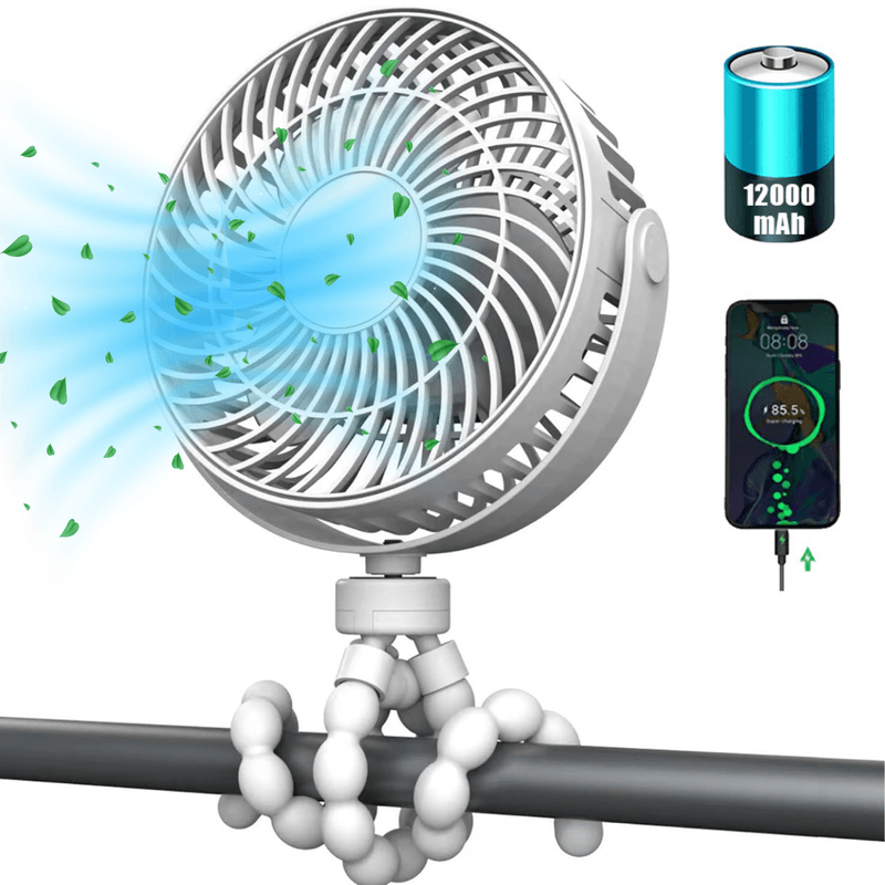 Bucura-te de racoare si confort oriunde te afli cu ventilatorul portabil multifunctional cu trepied flexibil, special conceput pentru a-ti oferi o experienta placuta si sigura atat pentru tine, cat si pentru cei mici. Cu un design modern, portabil si sigur pentru copii, acest ventilator devine accesoriul perfect pentru casa, masina, birou sau activitati in aer liber.
