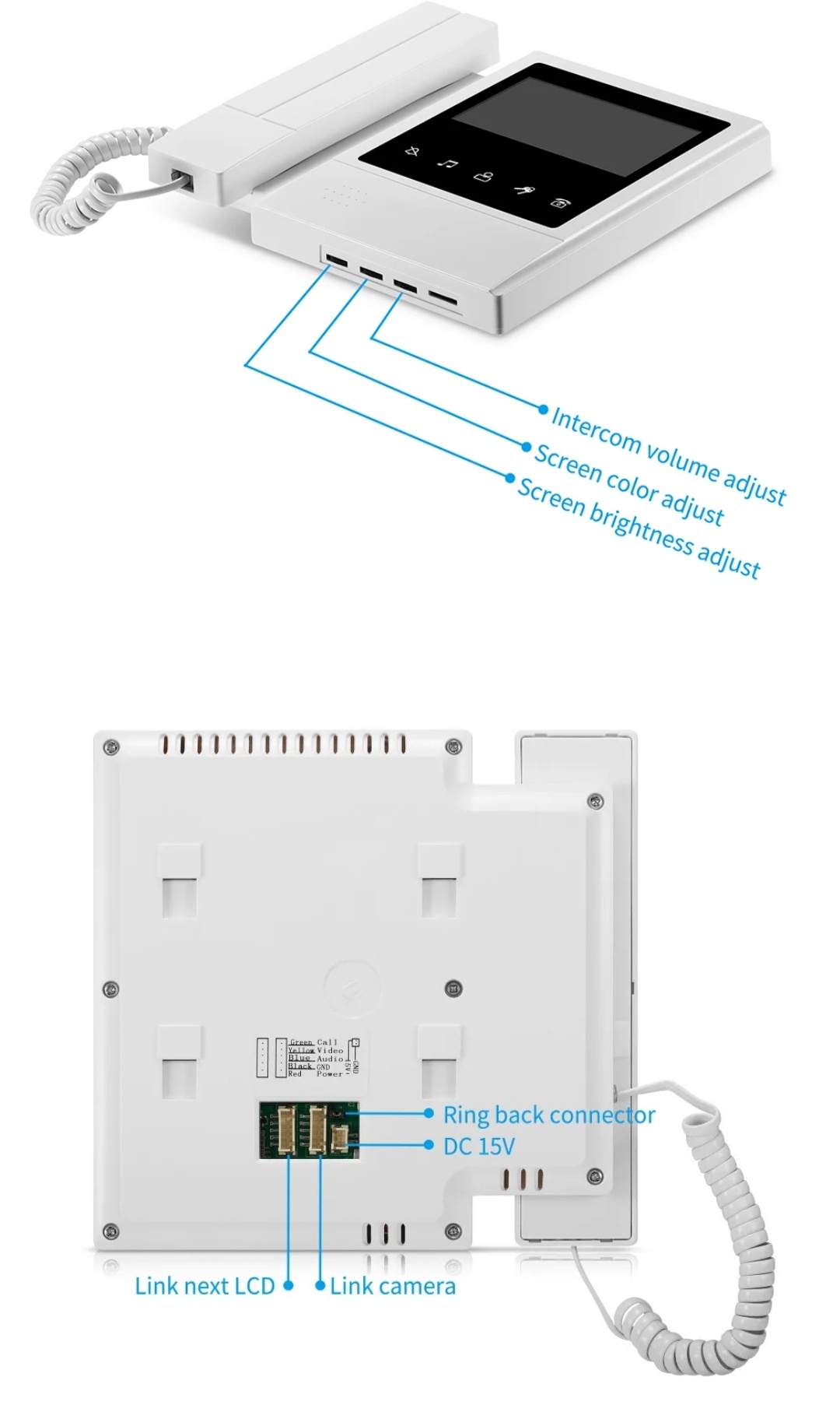 Videointerfon cu receptor,CRISTALIS SALE™ , Ecran TFT LCD color de 5 Inch , Viziune nocturna cu Infrarosu, Bidirectional cu deblocare a usii, Rezistent la apa, Alb