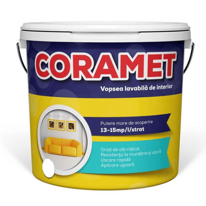 Vopsea lavabila de interior,Coramet TOP,Culoare alba,pe baza de rasini acrilice,8,5 litri Vopsea lavabila de interior,Coramet TOP,Culoare alba,pe baza de rasini acrilice,8,5 litri