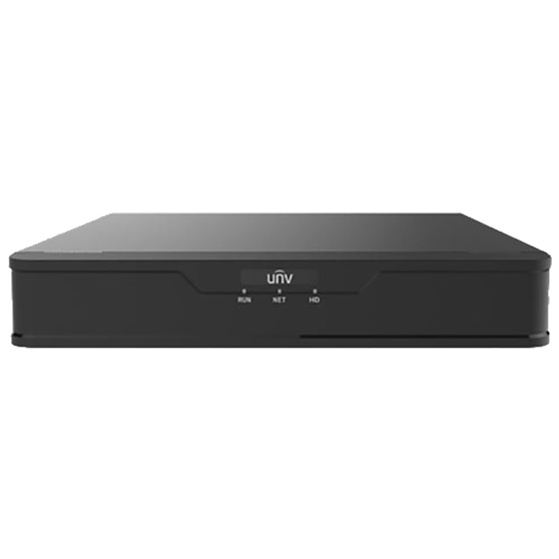 XVR Hibrid de la Uniview, suporta camere analog HD si IP cu rezolutie de pana la 8MP, capacitate 8 canale Analog + 4 canale IP (sau pana la 12 canale IP, dupa conversia camerelor analog), TVI/AHD/CVI/CVBS/IP, playback sincron pe 8 canale la o rezolutie maxima de 8MP prin HDMI si 2MP prin VGA, capacitate stocare 1 HDD maxim 8TB (neinclus). Suporta Audio over Coaxial pentru camere TVI. Alarma 4 IN/1 OUT. Accepta camere ce au protocol ONVIF si RTSP. Suporta detectia miscarii.