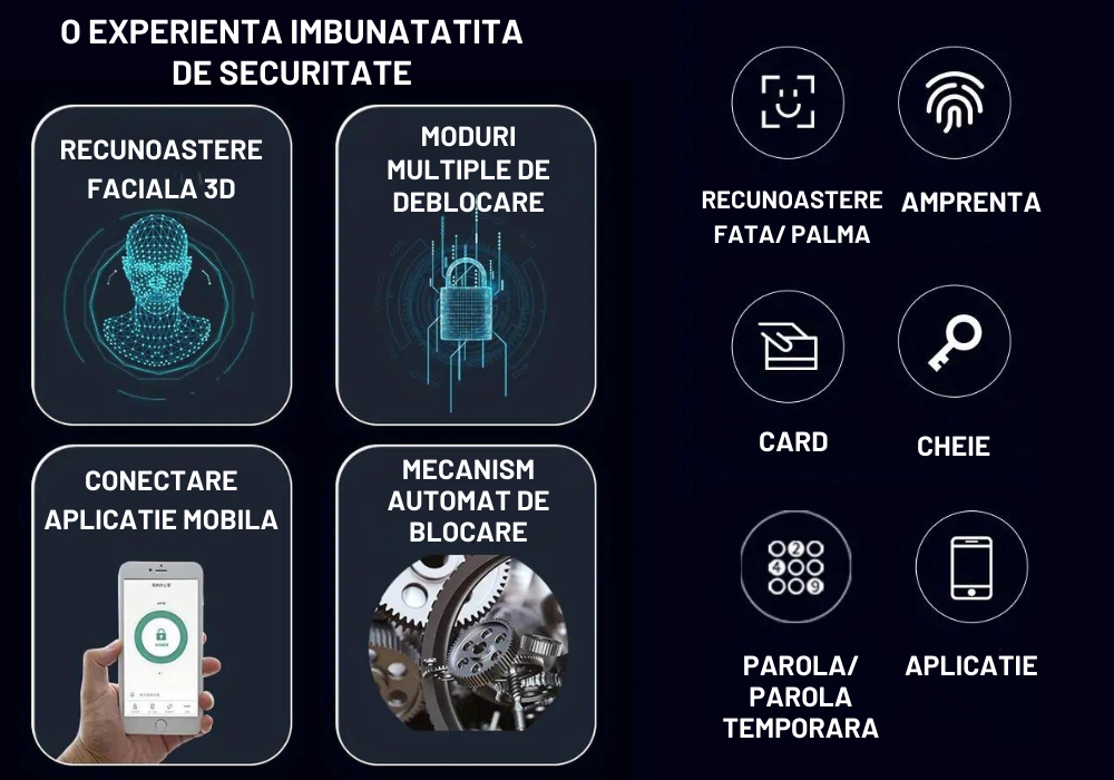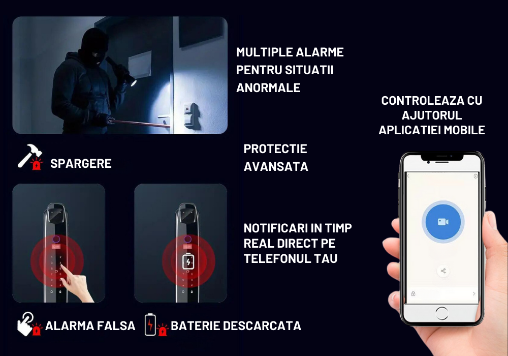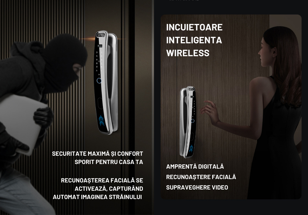 Investeste in siguranta familiei tale si in confortul de a controla totul direct de pe telefon. Cu aceasta yala inteligenta cu recunoastere faciala 3D si interfon video, usa ta devine mai sigura, mai eleganta si mai inteligenta ca niciodata.