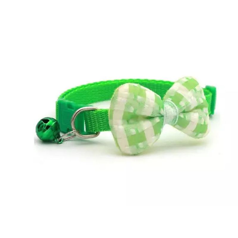Zgarda ajustabila cu clopotel si papion in carouri pentru caini si pisici, 19-32cm Zgarda ajustabila cu clopotel si papion in carouri pentru caini si pisici, 19-32cm, Verde